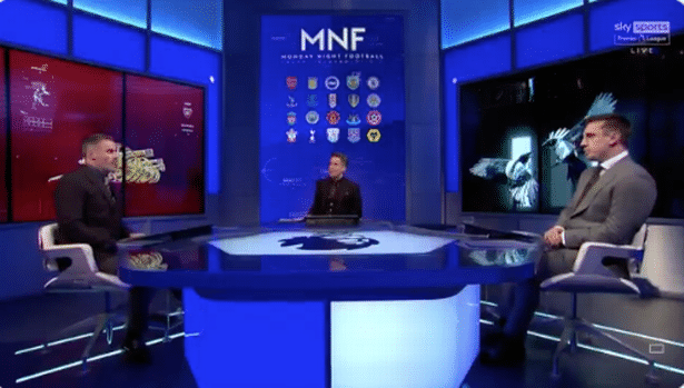 曼联下半场最后时刻有绝杀比赛的机会,但上半场球队几乎毫无还手,任由利物浦进攻。这一战术安排,引起了天空体育演播室中内维尔和卡拉格的争吵。