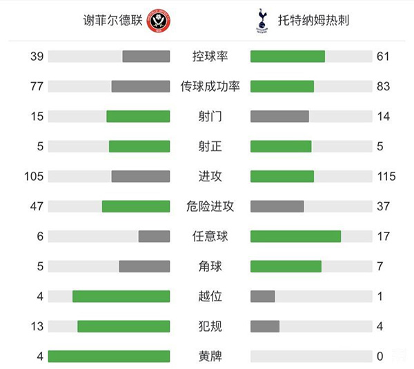 查看:谢菲尔德联vs热刺 全场录像技术统计:
