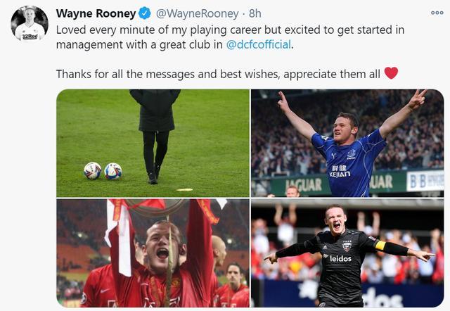 24直播网1月16日讯 昨天,曼联传奇球星鲁尼宣布退役,他将专注于执教德比郡的工作,消息传出后,许多人向他送上了祝福。