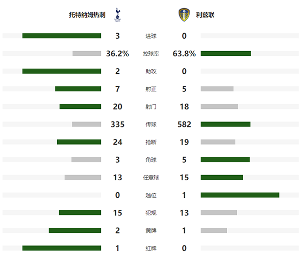 24直播网讯:北京时间1月2日20:30,英超第17轮比赛,热刺主场对阵利兹联。上半场,双方你来我往互有攻势,班福德头球造险,贝尔温造点,凯恩点射破门,哈里森劲射制造威胁,凯恩助攻孙兴慜完成热刺生涯百球成就;下半场,托比头槌再下一城,梅利耶连续化解凯恩和贝尔温射门,多尔蒂在补时阶段两黄变一红被罚下,最终热刺3-0战胜利兹联。