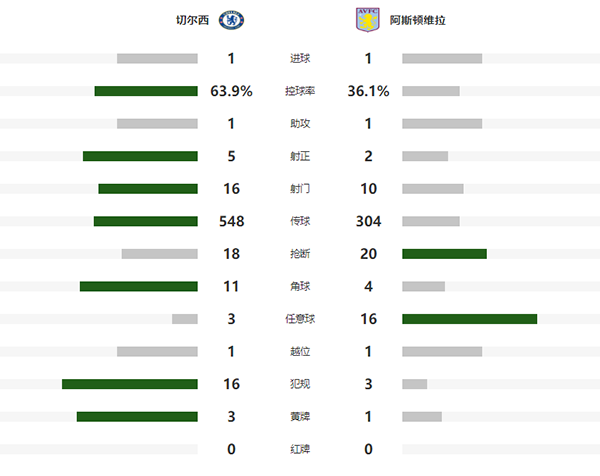 查看:切尔西vs阿斯顿维拉 全场录像技术统计: