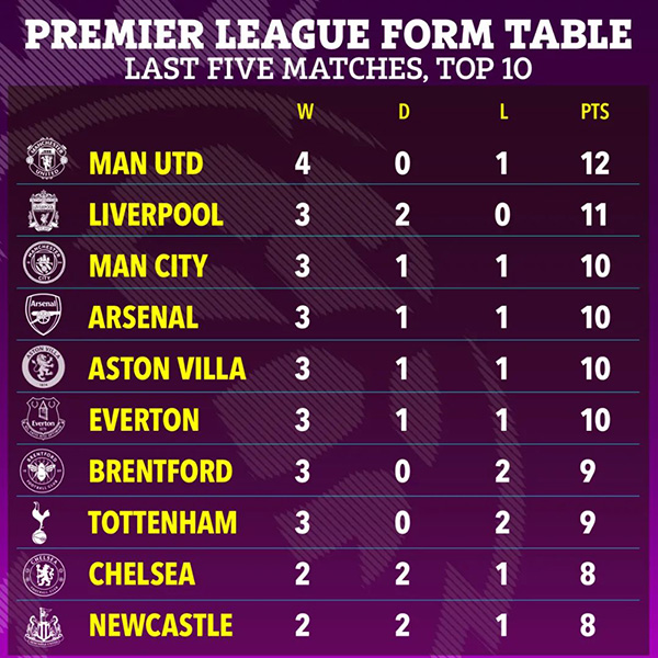 与格雷泽六兄妹不甚关注英式足球不同,出生于曼彻斯特的拉特克里夫非常关注足坛情况,他知道暂时的状态并不代表真正水平。就正如目前滕哈格率队在过去5轮英超取得4胜1负的战绩,但这并不代表他的球队多么强大,超越了曼城、利物浦等对手,而是因为这一阶段红魔的对手多是弱旅。曼联击败的4个对手分别是布伦特福德(第11位)、谢菲联(第19位)、富勒姆(第16位)、卢顿(第18位)。