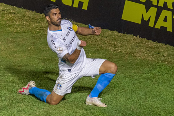 24直播网11月10日讯 结束的巴甲第33轮一场焦点战中,格雷米奥在客场4-3大逆转击败了领头羊博塔弗戈。本场比赛,36岁的乌拉圭神锋苏亚雷斯大发神威上演了帽子戏法,帮助球队完成大逆转。