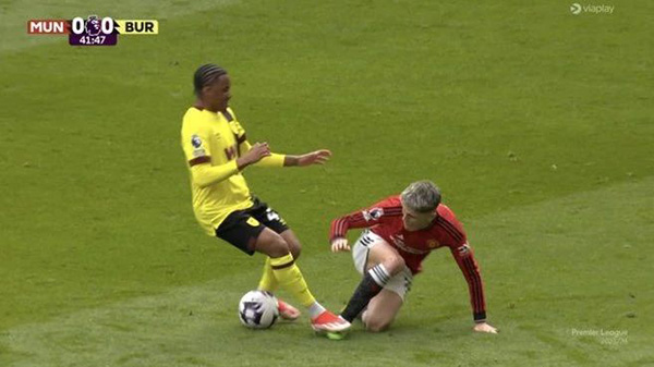 易边再战,形势依旧,双方互有攻守,曼联的安东尼和加纳乔浪费了机会,伯恩利门将穆里奇也回敬神扑救主。加纳乔的突破再次造成争议局面,他左路杀入禁区,似乎被达拉·奥谢踢到小腿后侧,裁判还是没有判罚。