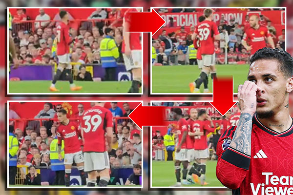 队友埃里克森和麦克托米内不得不安慰他,但安东尼仍然不愿意,他向场边的教练席抱怨着什么。随后,他捂着嘴对阿森纳的巴西前锋热苏斯说话。麦克托米内最后看不过眼,在中场对安东尼怒吼,似乎让他好好执行自己的任务。