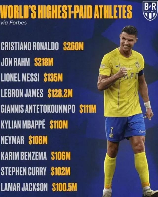 24直播网讯 福布斯官方公布2024世界上收入最高运动员排行