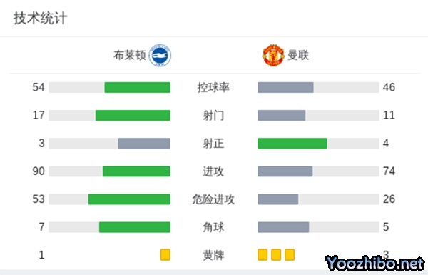 第88分钟,曼联扩大比分,霍伊伦接球后中路突破一条龙杀入禁区,右脚劲射破门,曼联2-0布莱顿!