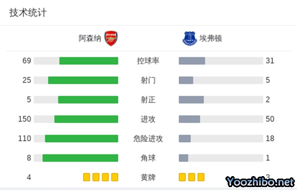 全场比赛结束,阿森纳主场2-1逆转埃弗顿。