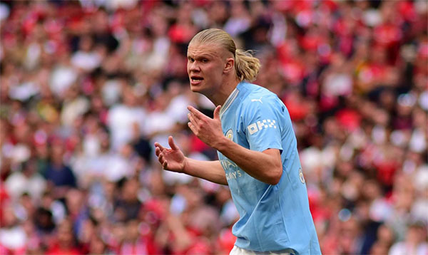 24直播网讯 在北京时间5月26日凌晨结束足总杯决赛中,曼城爆冷1-2不敌曼联,遗憾无缘卫冕。而本场比赛,曼城中锋哈兰德再次踢出了郁闷1战,不仅击中门框,两次禁区内摔倒都未能为球队赢得点球。
