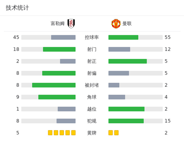 全场比赛结束,最终曼联1-0富勒姆。