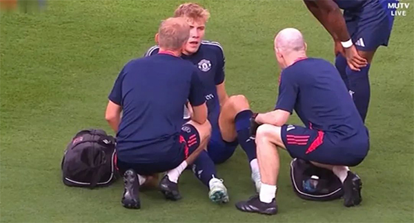 24直播网讯 在美国行的第一场比赛,曼联1-2被阿森纳逆转,但在此后娱乐性的点球大战中红魔扳回一城,4-3取得了胜利。霍伊伦德为红魔首开记录,但他和新援莱尼·约罗先后受伤退场,让球迷感到担心。