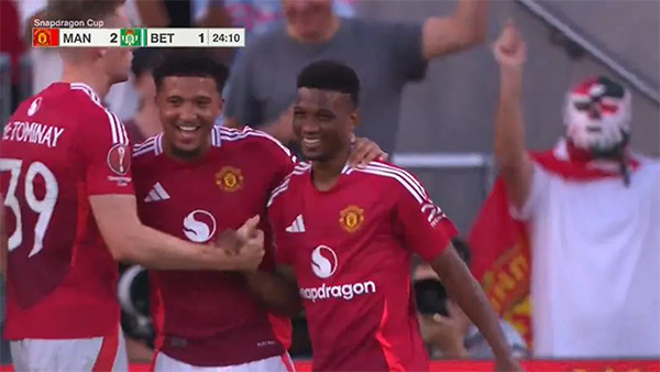阿马德不断参与控球,他的无球跑动同样令人印象深刻,其他球员因此也得到了进攻空间。在一次角球攻势中,拉什福德后点得球后横敲,卡塞米罗无人防守下扫射入网,曼联3-1领先两球。