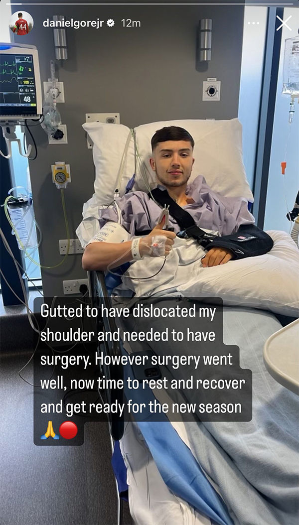 24直播网讯 曼联球员过去一两年以各种方式受伤长期缺阵,但青训中场丹尼尔·戈尔(Daniel Gore)的情况最为特别。这位去年热身赛上得到场上队长机会的天才球员,当时因为下半场一次飞铲被红牌罚下。戈尔本希望今夏再次向主帅滕哈格展示自己,然而一次奇怪的肩伤,让他至今尚未恢复训练。