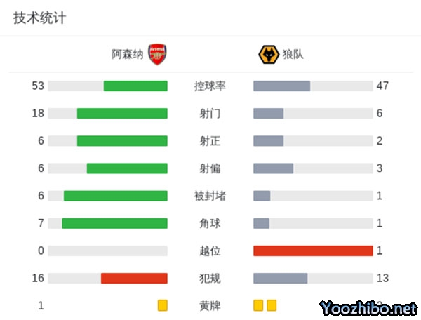 全场比赛结束,阿森纳2-0狼队。