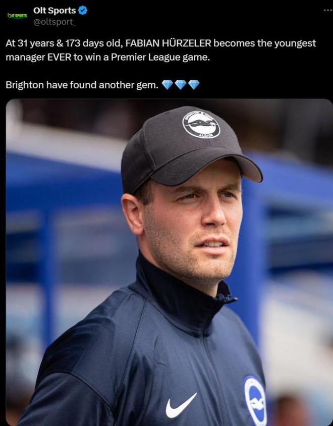据统计,出生于1993年的赫尔泽勒也创造了执教英超最年轻主帅纪录,他也是首位在英超1992年成立之后出生的主帅。