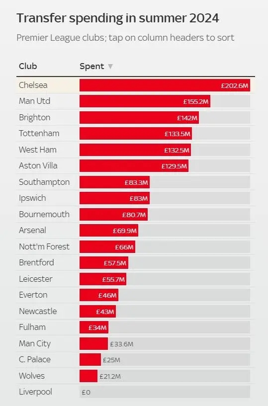 24直播网讯 天空体育最新统计显示,算上已官宣的菲利克斯转会,切尔西现在成为了英超今夏消费最多的俱乐部。