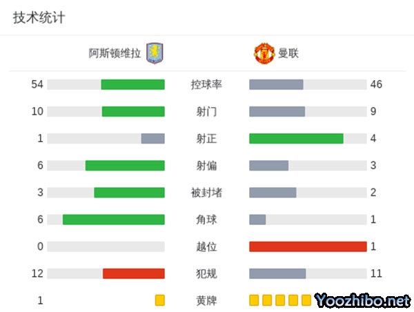 最终,曼联0-0战平维拉各赛事5场不胜。