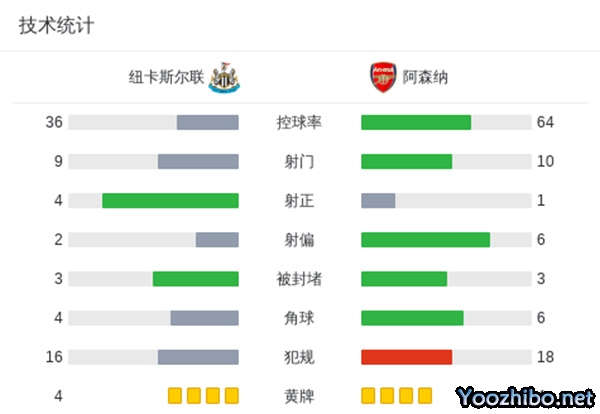 最终阿森纳客场0-1不敌纽卡斯尔。