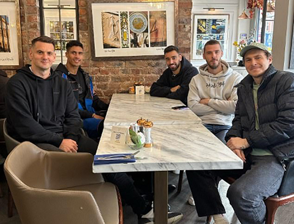 除了B费,汤姆·希顿、瓦拉内、林德勒夫等队友,也在曼联与谢菲联的英超联赛后与德赫亚进行了聚会,一起喝咖啡叙旧。在红魔更衣室,德赫亚拥有许多好友。