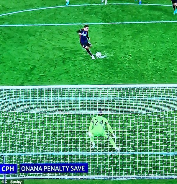 但奥纳纳这次扑救同样充满了争议。队友加纳乔在对方主罚点球之前破坏12码点,而奥纳纳也被认为在乔丹·拉尔森起脚罚球之前,已经提前离开门线,但VAR视频助理裁判并未认定此举违规。