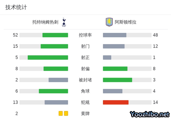 第32分钟,迪涅开出角球,前点波罗后蹭变成乌龙射门,维卡里奥挡出,门前空当罗杰斯轻松补射空门得手,阿斯顿维拉1-0热刺。