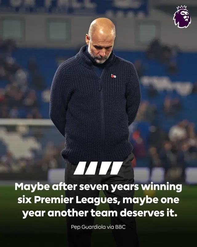 1-2不敌布莱顿,各项赛事遭遇4连败,赛后曼城主教练瓜迪奥拉谈到了英超争冠的话题: