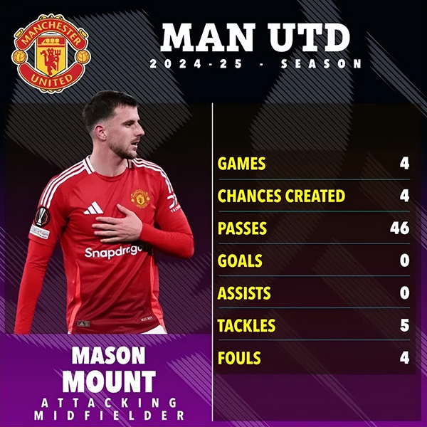 阿莫林赛后点名称赞了霍伊伦德和芒特的努力:「欧联杯中我们面对的压力有点大,梅森(芒特)踢了60分钟的高强度比赛,拉斯穆斯(霍伊伦德)最后都快累死了。出场的小伙子不得不努力,努力突破极限。」