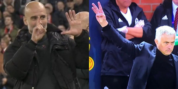 此前,瓜迪奥拉在0-2不敌利物浦的比赛中,面对利物浦球迷唱歌嘲讽自己“下课”行为,微笑伸出6根手指回应,寓意自己曾夺得6座英超冠军。而穆里尼奥也曾在执教曼联对阵老东家切尔西时比出3根手指,代表自己曾三夺英超冠军。