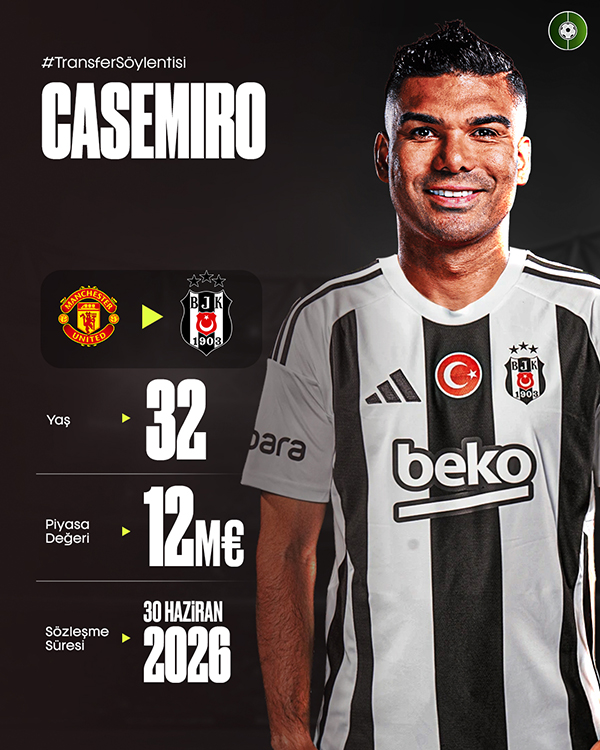 本周的新传闻显示,土超的贝西克塔斯有意引进卡塞米罗,新帅索尔斯克亚希望推动这笔交易。在被曼联解雇三年多之后,最近索帅终于重返教练席,取代范布隆克霍斯特,成为贝西克塔斯主帅。西媒报道称,索帅有意从曼联引进一些球员,首选就是卡塞米罗,并希望他替代塔塞姆·阿尔-穆斯拉蒂在防守中场的位置。