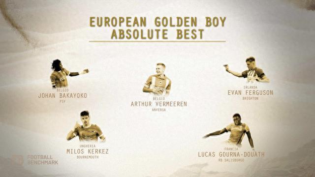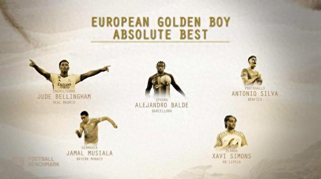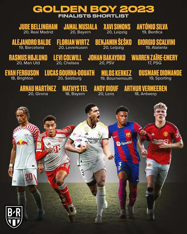 24直播网10月13日金童奖25人名单公布,贝林厄姆、穆西亚拉、霍伊伦、特尔、埃文-弗格森、亚马尔入选。