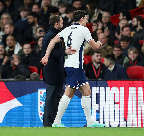 英格兰队周日官方宣布,曼联中卫哈里·马奎尔因伤退出周二与比利时的比赛大名单。31岁的马奎尔在三狮军团0-1负于巴西队之战67分钟被换下,索斯盖特当时称这是预防措施,但大头一瘸一拐地下场,周日接受扫描后,退出了第二场热身赛。