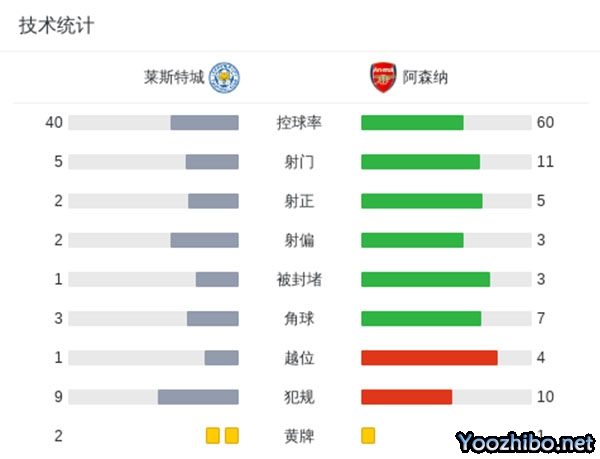 最终阿森纳2-0莱斯特城,先赛一场距榜首4分。