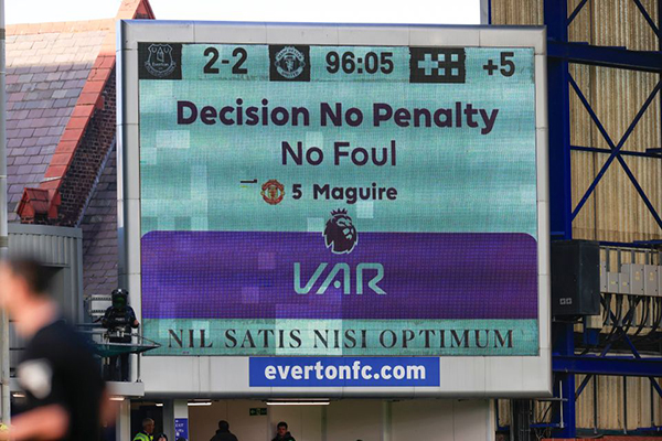 24直播网讯曼联2-2战平埃弗顿的比赛,最受关注的莫过于最后时刻被取消的点球。阿什利·扬在禁区内先后被德里赫特和马奎尔拉拽、推搡,他夸张倒地,主裁马德利最初判罚点球,VAR视频助理裁判马特·多诺霍介入后进行了改判。英超官方表示,这一判罚程序上不存在问题,是正确的操作。