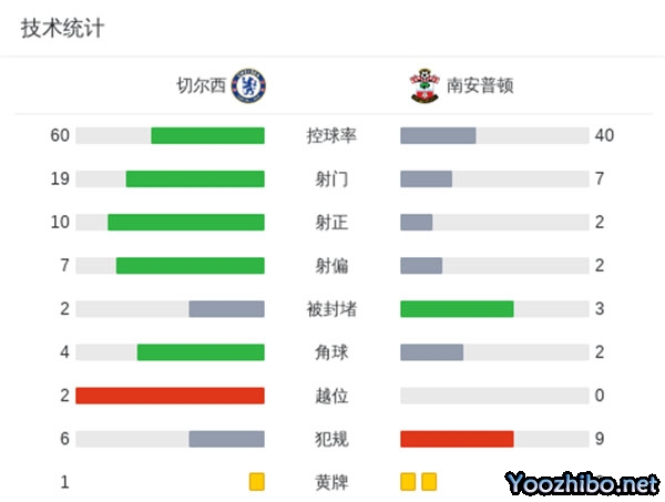 最终,切尔西主场4-0南安普顿。