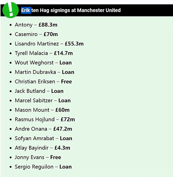 24直播网10月11日讯 曼联本赛季开局不佳,红魔目前在英超积分榜上排名第十,在欧冠小组中垫底。自去年夏天执掌红魔以来,53岁的滕哈格已经获得了大量资金。数据显示,他已经豪掷4.07亿英镑买人,而这个金额还将继续提升。据悉,荷兰人现在打算再次补强边锋位置,两名日本球员已经进入他的选择范围,布莱顿的三笘薰或者皇家社会的久保建英,都可能成为桑乔替代者。