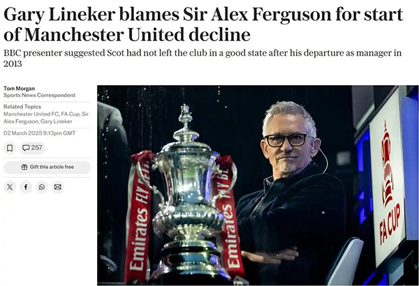 24直播网讯英格兰名宿、评论员莱因克尔在评述时表示,曼联如今衰落的原因可以追溯到2013年弗格森的离任。
