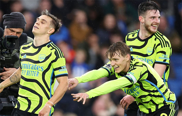 24直播网讯 英超联赛第32轮打响,豪门球队阿森纳强势出击,在客场以3-0的比分完胜劲旅布莱顿,从而继续保持英超赛场一路狂飙的状态,直接先赛一轮登顶英超积分榜,以71分排名英超第一,利物浦少赛一场70分排第二,曼城与阿森纳同场次,70分排第三。英超三强争霸的格局维持到了赛季末,这是最近几个赛季最精彩的争冠局面,阿森纳算是完成了蜕变,没有跟上赛季那样出现后劲不足,利物浦也保持比较强的后劲,曼城虽然有一定起伏,但总体也还算稳。