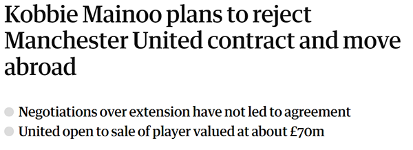 梅诺也是曼联的一个两难选择,大家都知道,如果收到一份7000万英镑左右的高报价,拉爵将同意出售这名球员。但俱乐部不能公开这么说,他们你必须强调自己「不情愿」出售梅诺这类青训天才的立场。