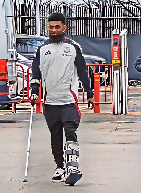 24直播网讯曼联上周的足总杯比赛中,因伤缺阵的阿马德·迪亚洛拄着拐杖、穿着防护靴出现在老特拉福德助威。他的现身未能鼓励队友晋级,球队输掉点球战被淘汰出局。然而,主帅鲁本·阿莫林随后透露,这位22岁边锋可能在赛季结束前伤愈复出,原本报销的赛季「死而复生」。