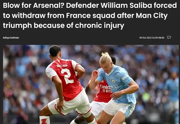 24直播网10月09日讯阿森纳后卫威廉-萨利巴因在阿森纳1-0战胜曼城的比赛中脚趾受伤而退出了法国队。