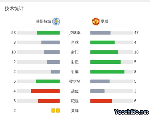 第28分钟,B费中场精准挑传,霍伊伦禁区右侧低射远角得手,莱斯特城0-1曼联!