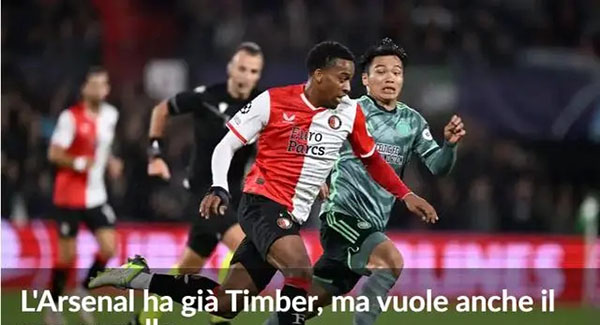 24直播网10月05日讯 据 Calciomercato 报道,阿森纳正在密切关注费耶诺德中场昆滕-廷贝尔。现年22岁的廷贝尔恰好是阿森纳后卫尤里恩-廷贝尔的孪生兄弟。