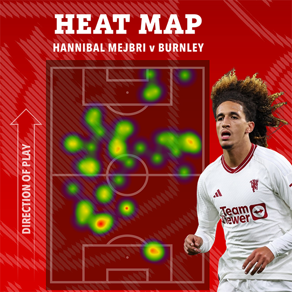 数据显示,20岁的汉尼拔在中场确实非常卖力,两个令人惊叹的数字显示了他的效率。在曼联与伯恩利的英超联赛中,他首次先发,90分钟的跑动距离高达12.9公里,是上赛季滕哈格执教至今曼联球员跑动最多的一次。