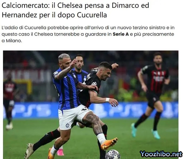 24直播网09月28日讯 据 Calciomercato 报道,切尔西正在考虑将国际米兰的费德里科-迪马尔科和AC米兰的西奥-埃尔南德斯作为潜在目标。