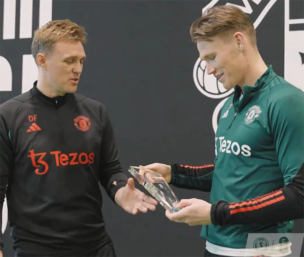 今夏的欧洲杯上,麦克托米内将代表苏格兰队前往德国参赛,他在预选赛8场打入7球,是「风笛军团」进入决赛圈的头号功臣。这名48次代表国家队出场的悍将,也当之无愧地荣膺苏格兰年度最佳球员,曼联的苏格兰传奇球员达伦·弗莱彻为他颁奖。如果能在欧洲杯决赛圈发挥出色,红魔新队魂在与俱乐部的谈判中,也将获得更好的资本。