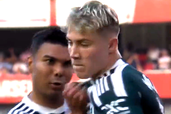 24直播网09月06日曼联7200万英镑中锋霍伊伦德已经完成首秀,在1-3不敌阿森纳的比赛中,他替补出场半小时,表现得到认可,险些助攻红魔绝杀对手。可惜,加纳乔因「体毛越位」进球无效,曼联在补时被连入两球,失败而归。比赛中还有另一个细节引发人们关注,巴西铁腰卡塞米罗一度揪住了霍伊伦德的衣领,但丹麦小将透露,「胖虎」是在激励自己。