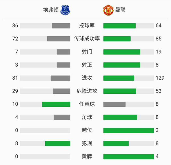 查看:埃弗顿vs曼联 全场录像技术统计: