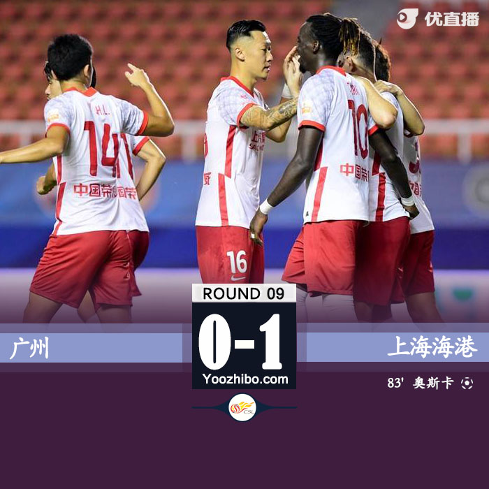 24直播网7月8日讯 北京时间7月8日晚上19:30,中超联赛第9轮,上海海港对阵广州。上半场,恩迪亚耶中框,保利尼奥错失良机,郑圣雄中楣还以颜色。半场战罢,上海海港暂0-0广州。下半场,艾菲尔丁送点,奥斯卡操刀命中。全场结束,上海海港1-0广州。