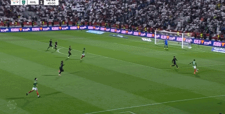 第45+3分钟,埃卡姆比右路得球横传禁区,福法纳插上小角度推射破门!吉达国民1-1达曼协作。