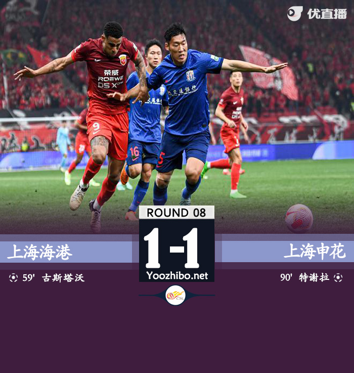 24直播网讯:北京时间4月27日,中超第八轮焦点战,上海海港主场迎战上海申花。上半场,路易斯头球攻门造险。易边再战,古斯塔沃打破僵局,最后阶段特谢拉绝平,武磊失绝杀,汪海健凌空抽射绝杀被吹。最终上海海港1-1上海申花。积分榜方面,海港15分第三,申花20分以2分优势领跑。